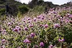Pelargonium capitatum est une des nombreuses espèces de plantes qui posent un problème majeur dans les régions côtières du sud-ouest de l'Australie car elle colonise les forêts de Banksia.