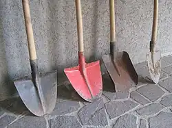 - la pelle à charbon, à manche court pour l'alimentation des poêles et à manche long pour le chargement des chaudières : bateaux, locomotives, chaudières industrielles.