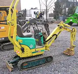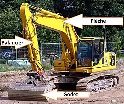 - ↑ Certaines micro-pelles ne comportent pas de tourelle mais seulement un pivotement limité de la flèche, cependant elles ne sont pas considérées comme des engins professionnels.
