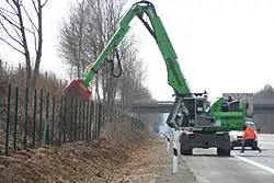 Les pelles « rail-route » sont des engins à double jeu de roues pouvant passer de la route à la voie ferrée de manière autonome.