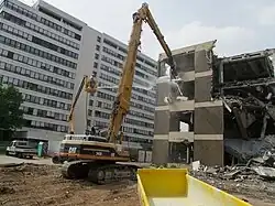 - les flèches interchangeables sont utilisées pour des travaux nécessitant une portée importante et variable : démolition d'immeuble notamment ;