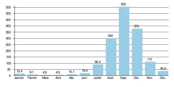 À Doba, le débit annuel moyen ou module observé sur cette période a été de 128 m3/s pour un territoire de plus ou moins 14 300 km2, soit la quasi-totalité du bassin versant de la rivière.