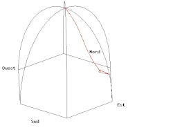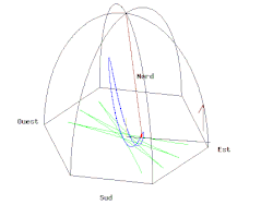 - Il suffit de tracer la courbe paramétrée par la partie réelle (longitude est) et la partie imaginaire (latitude nord) pour obtenir le tracé au sol de couleur verte de l'animation A (cliquer sur l'animation pour lire le programme de tracé en langage Gnuplot correspondant) même si la vitesse de rotation de la Terre est très exagérée (pour une visualisation des phénomènes) et de l'ordre d'une rotation en 110 secondes au lieu d'une rotation par 24 heures.