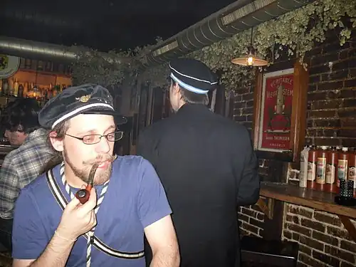 - Dépucelage: lorsqu'au terme de son baptême, le bleu reçoit sa penne, il ne peut la coiffer tout de suite. Elle doit en effet d'abord être dépucelée. Le rituel consiste à percer un trou sur la face intérieure du calot (parfois, notamment à Liège, à travers toute l'épaisseur de celui-ci) avec une cigarette (ou un briquet) puis à la remplir de bière (parfois versée directement sur la visière) qui devra alors être bue en à-fond par le nouveau baptisé avant qu'on ne lui ne retourne la penne sur sa tête avec le contenu restant. À Liège, Namur et à Charleroi, le "dépuceleur" ajoutera à la bière toute autre substance qu'il considère utile (urine, vomi...). La cérémonie est généralement accomplie par le(s) parrain(s) du bleu voire, comme c'est parfois le cas à l'ULB, par un comitard de baptême. Porter une penne neuve dans laquelle on a versé un liquide a l'avantage de former le couvre-chef à son porteur. C'est donc autant un acte d'appropriation qu'une « retouche » du vêtement[13].