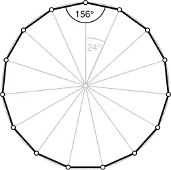 La somme des 15 angles internes d'un pentadécagone non croisé vaut 2 340 degrés.