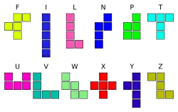 | Pentomino | F | I | L | N | P | T | U | V | W | X | Y | Z |