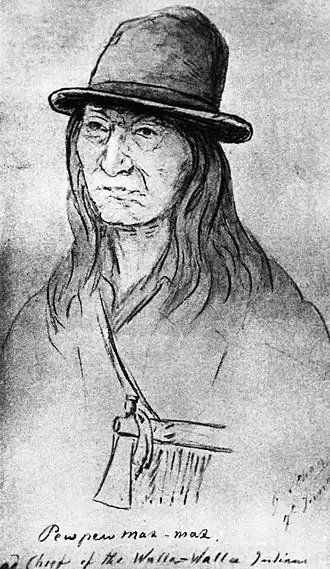 Représentation de Peo-Peo-Mox-Mox par Gustav Sohon en 1855.
