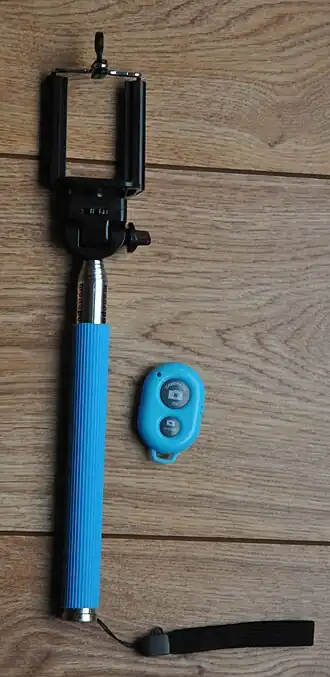 La perche à selfie est un accessoire de photographie composé d'un monopode et d'un support pour un appareil photo ou un smartphone dans le but de réaliser un selfie. Elle induit du recul et apporte donc un angle de prise de vue différent pour ces photographies. Le déclenchement se fait soit par un bouton sur la perche, relié par USB ou Jack au téléphone, soit par une petite télécommande Bluetooth.