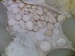 Sphériques, ovales, ou parfois de forme plus irrégulières, elles sont souvent groupées en nids ou en nappes[4].