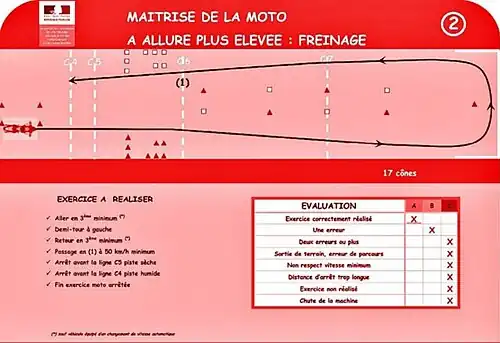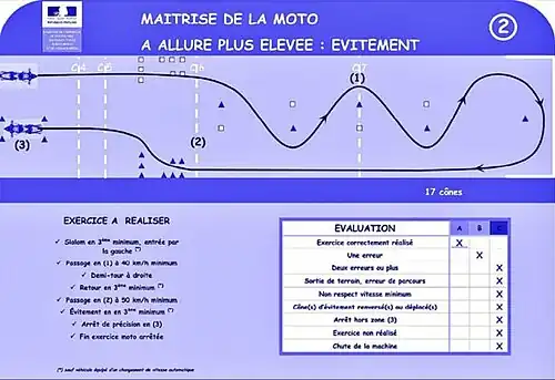 - ↑ https://www.securite-routiere.gouv.fr/actualites/de-nouvelles-epreuves-pour-le-permis-moto-des-le-1er-mars-2020