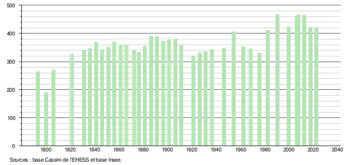 - ↑ Fiches Insee - Populations de référence de la commune pour les années 2006, 2007, 2008, 2009, 2010, 2011, 2012, 2013, 2014, 2015, 2016, 2017, 2018, 2019, 2020, 2021 et 2022.