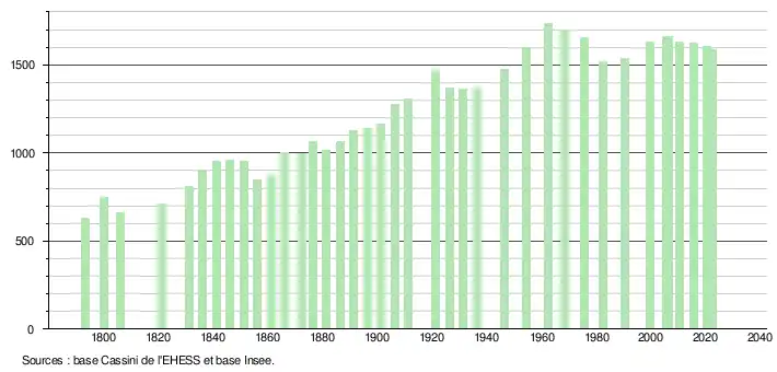 - ↑ Fiches Insee - Populations de référence de la commune pour les années 2006, 2007, 2008, 2009, 2010, 2011, 2012, 2013, 2014, 2015, 2016, 2017, 2018, 2019, 2020, 2021 et 2022.