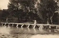 - - partie d'un chemin qui est de pierres ou de pavés (synonyme : « chemin ferré »)[5].