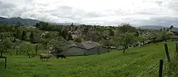 Vue du centre de Perrignier depuis la route du Villard. | |||||