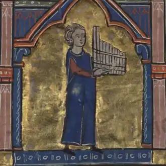 Perrin d'Angicourt jouant de l'orgue portatif dans un chansonnier.