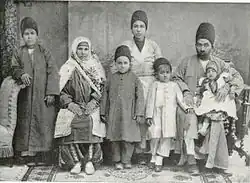Les zoroastriens étaient soumis à des discriminations publiques au moyen de statuts vestimentaires[64],[65], interdits de porter des vêtements neufs ou blancs[65] et contraints par ordonnance de porter des vêtements jaune terne comme insigne distinctif[14],[65],[68]. Il était interdit à tous les zoroastriens de porter des manteaux, des lunettes[64], des pèlerines, des pantalons, des chapeaux, des bottes[56], des chaussettes, de serrer étroitement et soigneusement leurs turbans[71], de montres ou des bagues[72]. En revanche, ils étaient obligés de porter de longues robes appelées qaba et des espadrilles (geeveh) en coton, même l’hiver[56]. Les jours de pluie, ils n’avaient pas le droit d’avoir de parapluies[64] ou d’apparaitre en public, de crainte que l’eau leur ayant coulé sur leur corps et à travers leurs vêtements ne pollue les musulmans. À Yazd, les zoroastriens devaient porter un grand châle qu’ils devaient placer sous leurs pieds de façon à empêcher le tapis d’être pollué lorsqu'ils se rendaient chez un musulman[56]. Ils ne pouvaient monter que des mules ou des ânes[14],[65],[67],[68], les chevaux de selle leur étant interdits[64],[65] et devaient démonter face à un musulman[71]. La proscription générale contre la monte des chevaux et des ânes aux zoroastriens n'a été levée qu’en 1923 par Reza Shah[73].