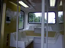 Les véhicules, au nombre de 73 à l'origine, disposent chacun de huit places assises (quatre sièges disposés en "U" à chaque extrémité) et permettent l'accessibilité à un fauteuil de personnes handicapées. Douze personnes peuvent également se tenir debout au centre des véhicules. Ils sont équipés de la climatisation et possèdent des portes automatiques de chaque côté qui s'ouvrent sur la plate-forme .