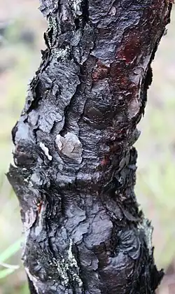 La plupart des espèces de Persoonia d'Australie occidentale possèdent des rhizomes à partir desquels elles se régénèrent après un incendie ou autres perturbations. L'écorce de la plupart des espèces est dure et compacte. Elle peut être quelque peu fissurée ou légèrement écaillée à la base de la tige principale et est généralement de couleur pâle à gris moyen ou marron et quelque peu tachetée. Quatre espèces possèdent cependant une écorce nettement différente : Persoonia falcata, Persoonia levis, Persoonia linearis et Persoonia longifolia ont toutes une écorce lamellaire constituée de nombreuses couches minces comme du papier, marron foncé ou gris à noir vers l'extérieur, mais rouge-violet profond vers l'intérieur. Ces couches sont généralement fissurées, et l'écorce dans son ensemble devient donc très floconneuse[2].
