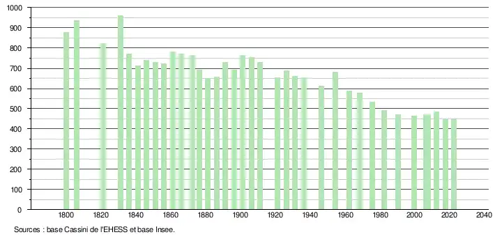 - ↑ Population municipale de référence en vigueur au 1er janvier 2025, millésimée 2022, définie dans les limites territoriales en vigueur au 1er janvier 2024, date de référence statistique : 1er janvier 2022.