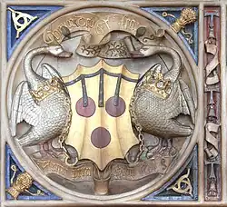 - ↑ A Delineation of the Courtenay Mantelpiece in the Episcopal Palace at Exeter by Roscoe Gibbs with a Biographical Notice of The Right Reverend Peter Courtenay, DD,... To which is added A Description of the Courtenay Mantelpiece compiled by Maria Halliday, privately published at the Office of the Torquay Directory, 1884, p.10