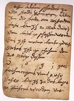 Le professeur Jan Peters (historien) (de), qui avait publié une transcription du livre en 1993, avait déjà indiqué que la langue utilisée montrait des origines communes avec l’allemand de Rhénanie (aujourd'hui dans l'ouest de l'Allemagne). Cette affirmation pourrait être contredite par la mention de Zerbst (Est de l'Allemagne) dans le registre de baptême. Cependant, d'autres recherches ont révélé que le Flaeming a été dominé par des colons venant des régions du Rhin à l'époque. La région du Flaeming se trouve dans le nord-est de la Principauté historique d'Anhalt-Zerbst - région qui a par la suite fusionné avec la Prusse pour prendre la langue du territoire Potsdam-Berlin.