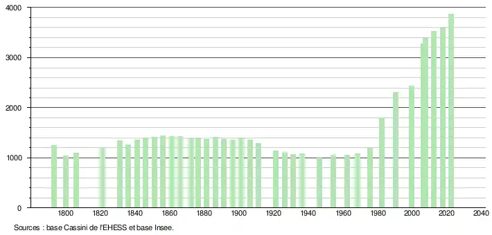 - ↑ Fiches Insee - Populations de référence de la commune pour les années 2006, 2007, 2008, 2009, 2010, 2011, 2012, 2013, 2014, 2015, 2016, 2017, 2018, 2019, 2020, 2021 et 2022.