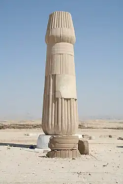 En 1994, des répliques en béton des colonnes papyriformes ont été assemblées dans leur position initiale devant la cour intérieure du sanctuaire. Ces colonnes sont des répliques basées sur les fragments trouvés lors des fouilles de 1931 et ont été fabriquées en Égypte à partir de moules fabriqués en Angleterre[6].