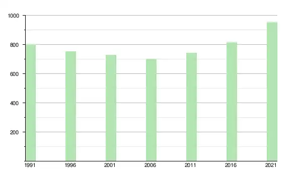 Le recensement de 2011 y dénombre 744 habitants, soit 5,8 % de plus qu'en 2006[3],[4]. En janvier 2025, sa population est estimée à 1343 habitants[5].
