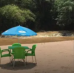 Les petites chutes forment un petit lac et une plage de sable fin.