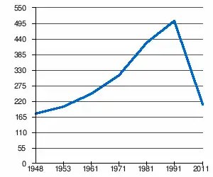 - 1 2 (sq) « Évolution de la population 1948-2011 », sur pop-stat.mashke.org (consulté le ).