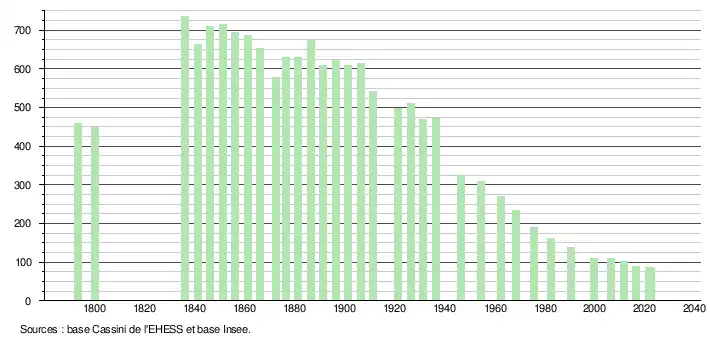 - ↑ Population municipale de référence en vigueur au 1er janvier 2025, millésimée 2022, définie dans les limites territoriales en vigueur au 1er janvier 2024, date de référence statistique : 1er janvier 2022.