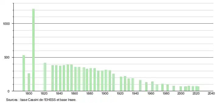 - ↑ Fiches Insee - Populations de référence de la commune pour les années 2006, 2007, 2008, 2009, 2010, 2011, 2012, 2013, 2014, 2015, 2016, 2017, 2018, 2019, 2020, 2021 et 2022.