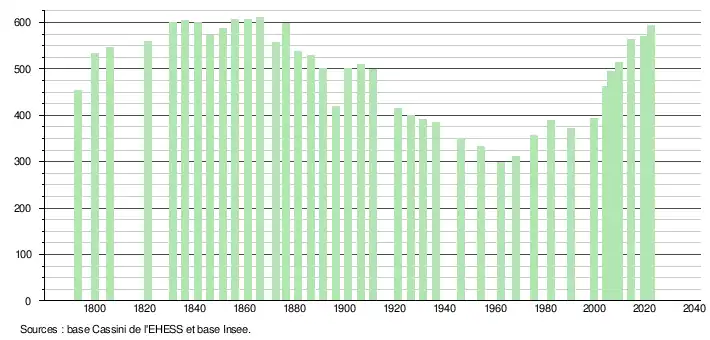 - ↑ Population municipale de référence en vigueur au 1er janvier 2025, millésimée 2022, définie dans les limites territoriales en vigueur au 1er janvier 2024, date de référence statistique : 1er janvier 2022.