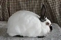 Ce lapin possède un patron de coloration typique avec un corps blanc et des poils noirs aux extrémités (c'est-à-dire autour de la queue, du nez, des oreilles et des pattes) quand il grandit dans des conditions modérées de températures.
