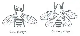 De ce fait, un embryon de drosophile traité avec des vapeurs d’éther, peut produire le phénotype d’une mouche adulte mutante bithorax sans avoir de mutation génétique. C’est uniquement le stimulus qui va perturber son développement[5].