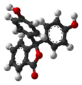 La phénolphtaléine a aussi été utilisée en médecine humaine comme laxatif de contact (irritant ou stimulant) dès 1906, à la dose de 200 mg par jour par voie orale, jusqu'au retrait de la plupart des médicaments en contenant à la suite de la découverte de son caractère cancérogène à haute dose[6]. D'autres laxatifs, tels que le bisacodyl, sont de structure apparentée.