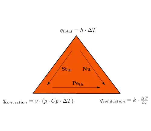 - avec h le coefficient de transfert thermique, Lc la longueur caractéristique, k la conductivité thermique, α la diffusivité thermique et v la vitesse.