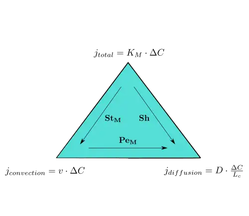 - avec KM le coefficient de transfert de masse, Lc la longueur caractéristique, D le coefficient de diffusion et v la vitesse.