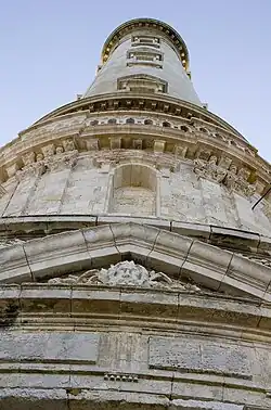 Le premier feu à réverbères paraboliques voit le jour en 1782, mais le phare se trouve alors en très mauvais état. Les marins déplorent par ailleurs l'insuffisance de la portée du phare, dont le feu n'est pas assez élevé[14]. D'importants travaux de rénovation sont donc nécessaires. Ils sont menés de 1782 à 1790 par l'ingénieur Joseph Teulère, qui suggère de rehausser cette tour de 30 mètres en conservant le rez-de-chaussée et les deux étages[15], et ceci dans le style Louis XVI, dont la sobriété un peu sèche contraste avec la richesse des étages inférieurs, qui ont conservé leur décoration Renaissance.