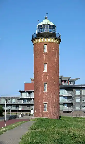 Le phare de Cuxhaven[1],[2] a été construit entre 1802 et 1804 par la ville hanséatique de Hambourg, à laquelle appartenait autrefois la région. Le phare est l'un des principaux monuments de la ville. Il a fonctionné jusqu'en 2001. Le portail de grès à l’entrée est orné des armoiries de Hambourg , sous lequel est inscrit :Nautis signum / sibi monument erexit / respublica hamburgensis / Ao MDCCCIII - (Aux marins comme signe lui-même érigé par l’État de Hambourg en 1803).