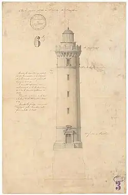 - ↑ Les Archives nationales conservent sous la cote CP/F/14/17509/4 trois plans du phare de la Falaise des Fonds élaborés en 1907 et sous la cote CP/F/14/17509/6 huit plans du phare de Honfleur élaborés de 1845 à 1871.