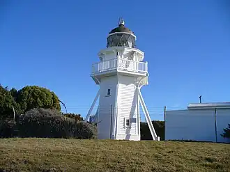 Le phare[1][source insuffisante], a été mis en service le , à la suite de plusieurs accidents sur les dangereux récifs à l'approche de Port Chalmers-Dunedin. L'objectif original fonctionnait avec une lampe de 1.000 watts alimentée par le secteur, avec un générateur diesel en cas de secours. On peut encore le voir dans la salle de la lanterne au sommet de la tour. Il a été remplacé par une balise à diode électroluminescente alimentée par le secteur, avec une batterie pour l'alimentation de veille.