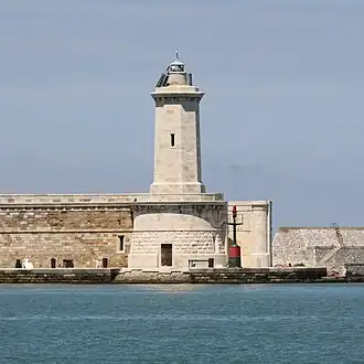 L'ancien phare, mis en service en 1857, est une tour octogonale en pierre de 20 m de haut centrée sur une base circulaire en pierre de deux étages érigée à la fin des travaux du brise-lames incurvée. Il a été remplacé par une tourelle métallique, située devant l'ancien phare, en 1927.