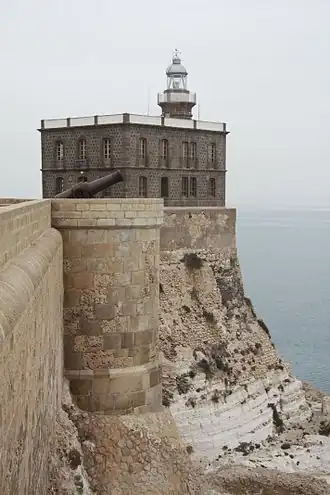 Le phare fait partie du bastion historique de Melilla et il est perché sur un mur en pierre de fortification du côté nord du port. Le site est fermé et le phare n'est pas accessible.