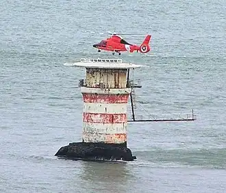 Le phare a été achevé en 1906, en remplacement de la bouée à cloche. Le rocher sur lequel il est érigé ne mesurait que 12 mètres de long sur 9 mètres de large à marée haute. Il provoqua, le , le naufrage du navire à passager brésilien SS City of Rio de Janeiro (en). La base est un grand bloc de béton de près de 1.500 tonnes protégé par un placage en acier. La tourelle, au dessus de la plateforme était en acier et abritait une corne de brume, le logement des gardiens, et la lanterne.