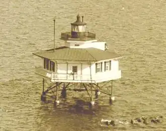 La maison-phare sur plateforme a été construite en 1858 pour marquer l’entrée du port de Deltaville, juste à l’ouest de la pointe. Un rapport datant de 1865 indique que les réparations ont été effectuées après le phare fut pillé pendant la guerre de Sécession.