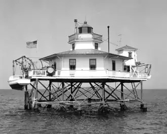 Ce phare a remplacé les bateaux-phares en poste à cet endroit à partir de 1853. Des piles supplémentaires ont été ajoutées à la structure habituelle à six piles afin de renforcer la stabilité contre les courants. En 1903, un enrochement a été placé autour des piles pour une protection supplémentaire. Un ouragan en a endommagé la maison-phare.