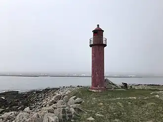 Le phare est une tour ronde métallique de 7 mètres de haut par 2 mètres de large[1] et entièrement peinte en rouge, avec devant la lanterne une étroite coursive extérieure. Il comportait un feu fixe et à deux secteurs rouge et blanc d'une portée de 7 milles[2].