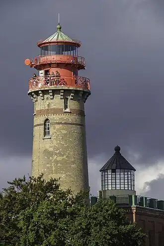 Le phare actuel du cap Arkona[2], construit entre 1901 et 1902, a été mis en service le . Il est situé à côté de l'ancienne tour et repose sur une base octogonale en granit. 175 marches mènent à une plate-forme d'observation publique à une hauteur de 28 m.