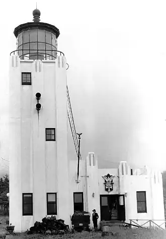 Le premier phare à cet emplacement a été achevé en 1910, il marquait l'entrée dans la baie du Prince-William, un feu temporaire avait auparavant été installé en 1909.